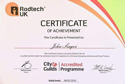 John has also completed the Rodtech City & Guilds accredited programme in chimney sweeping and advanced fault finding.